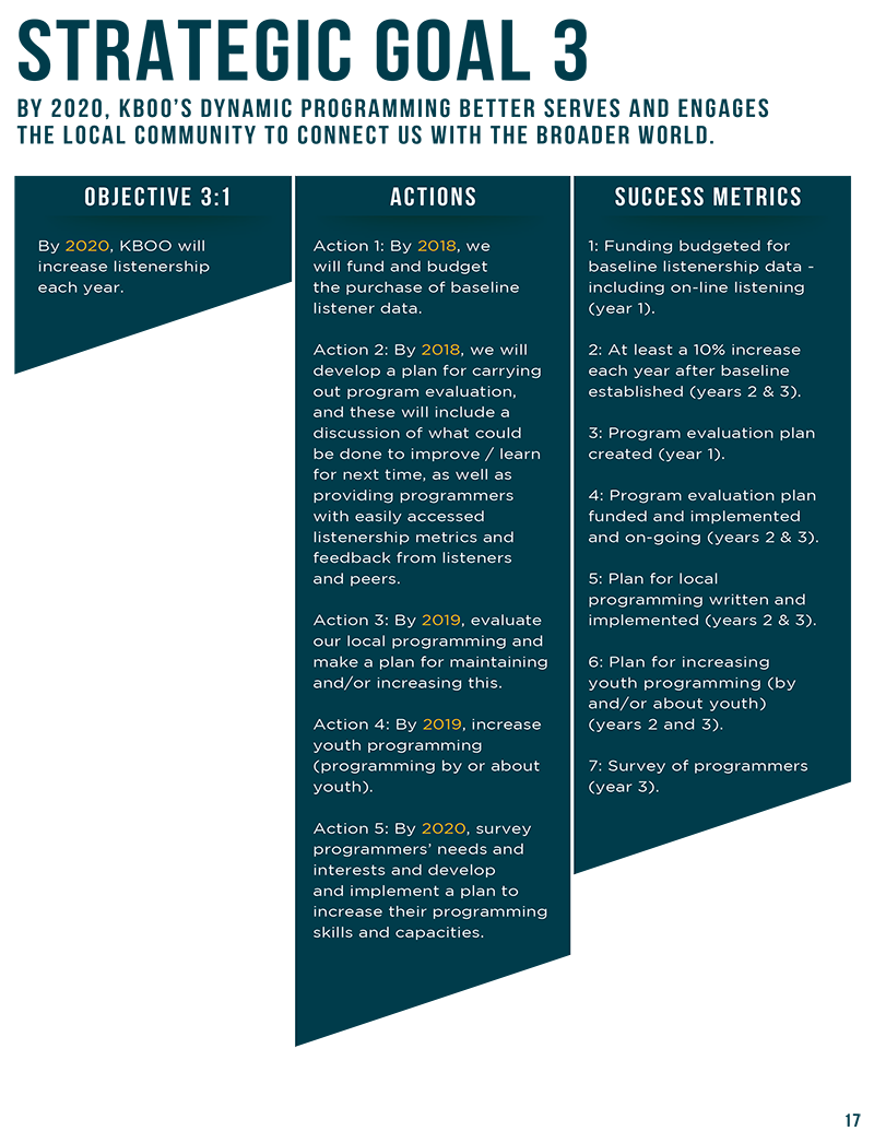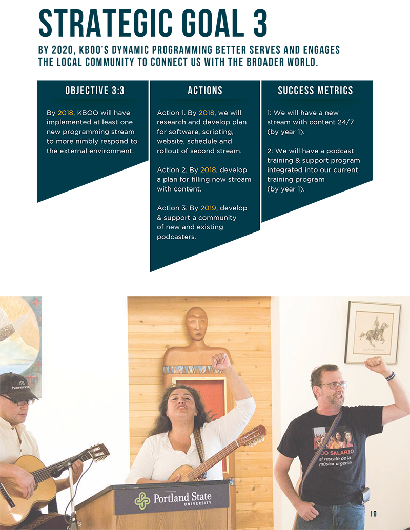 KBOO’s vision for 2017-2021 is to become Oregon’s community media hub, leveraging the power of the airwaves to support a revolution for a just and sustainable future.